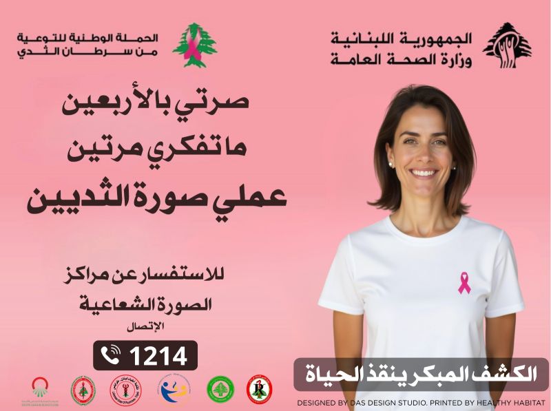 أطلق وزير الصحة العامة الدكتور ركان ناصر الدين الحملة الوطنية للتوعية والكشف المبكر عن سرطان الثدي تحت شعار "صرتي بالأربعين، ما تفكري مرتين، اعملي صورة الثديين".